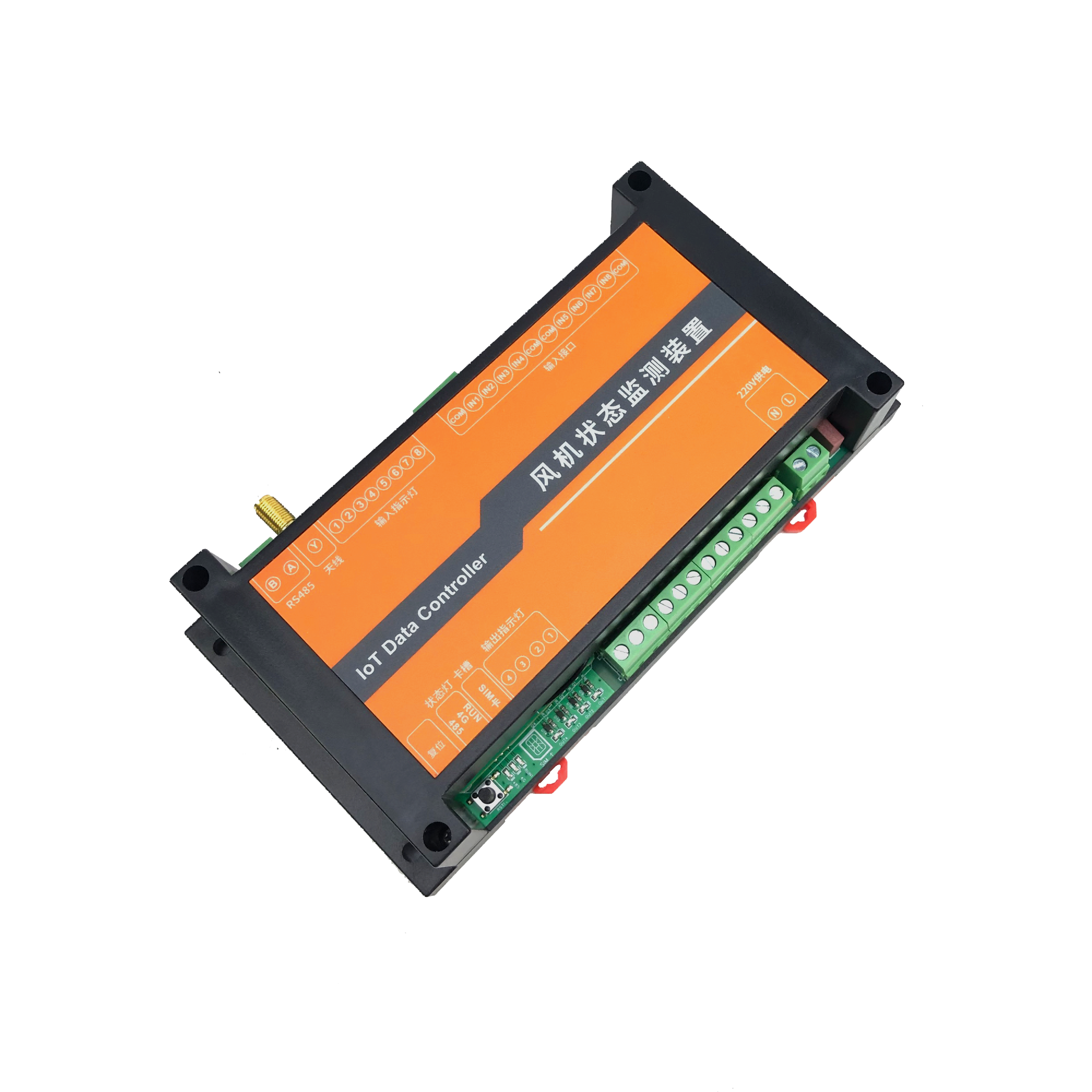 | 主要特點(diǎn):4路繼電器采集、1路模擬量采集、1路485采集風(fēng)機(jī)狀態(tài)監(jiān)測(cè)裝置 | ||