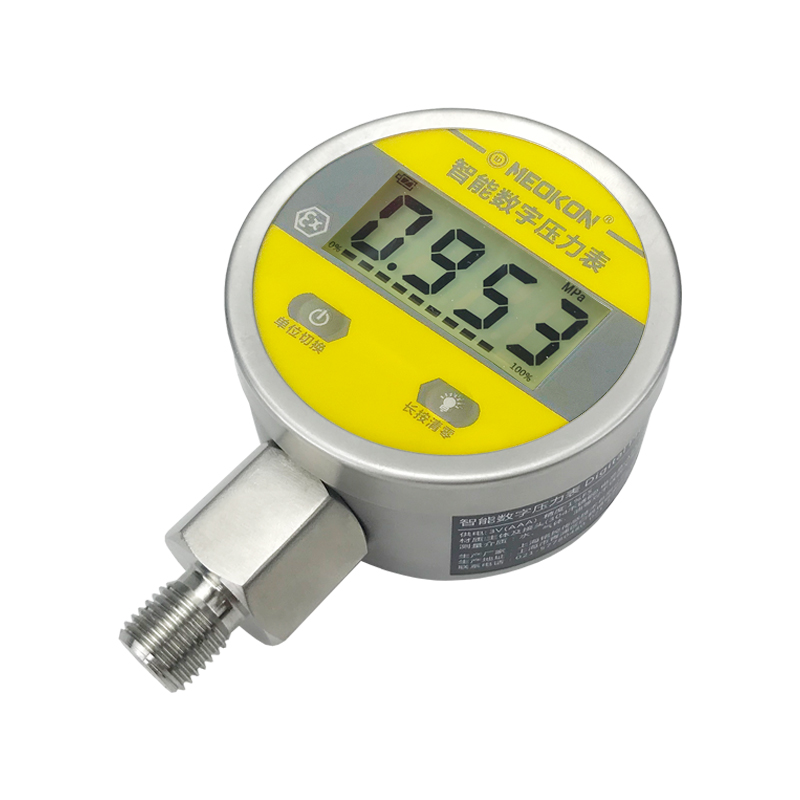 該數(shù)字壓力表配備LCD液晶顯示屏,具有清零、背光、開關(guān)機(jī)、單位切換、低電壓報(bào)警等多種功能,操作簡單,安裝方便。產(chǎn)品采用304不銹鋼殼體和接頭,抗震性好, 能夠測量氣體、液體、油等對(duì)不銹鋼無腐蝕的介質(zhì)。